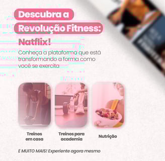 Conheça a Natflix Fitness, a plataforma mais completa do Brasil, que une treinos em casa e na academia, meditação, yoga, alongamento, power ballet, fitdance, além de conteúdos exclusivos com nutricionistas e psicólogos. Tudo isso para proporcionar uma experiência única e personalizada na sua jornada fitness.